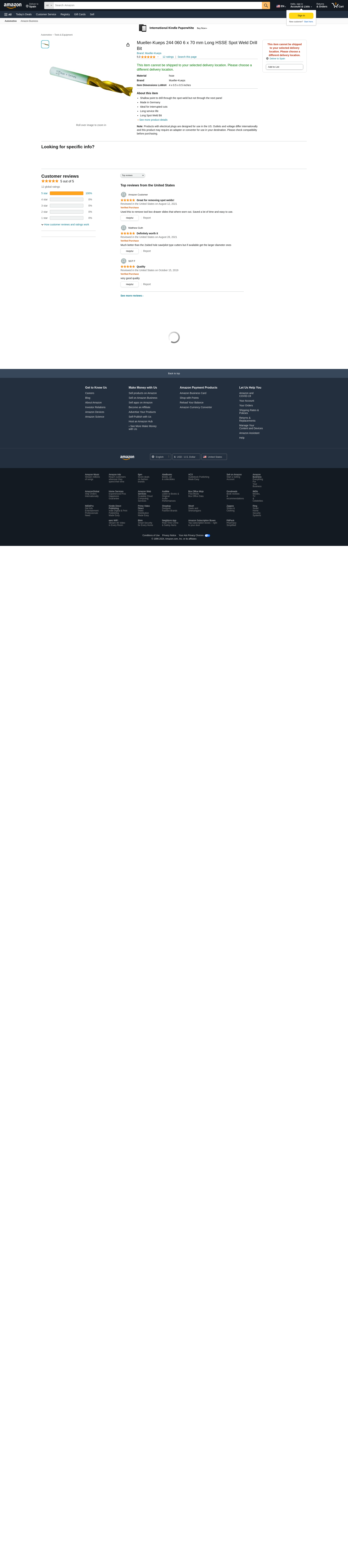 Buy Mueller-Kueps 244 060, Spot Welding Drill Bit Long HSSE 6 x 70mm - Prime Buy