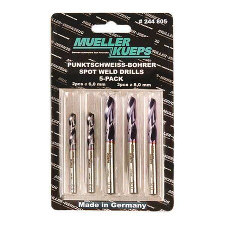 Mueller-Kueps 244 805 Spot Weld Drill, (Pack of 5) (2ea. 6mm - 3ea. 8mm)