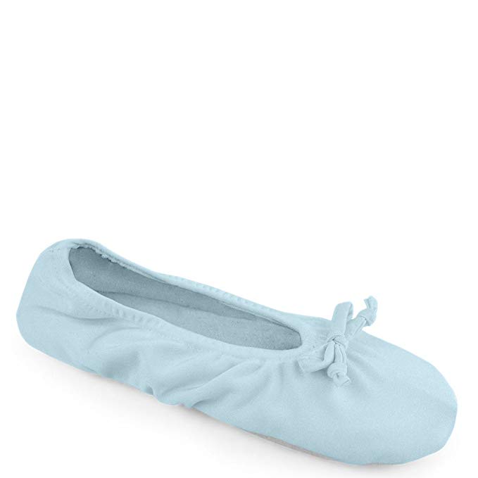 Muk Luks 0015791428-M Womens Stretch Satin Ballerina Slippers, Blue - Medium