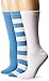 MUK LUKS Women's Game Day Sport Stripe Crew Socks, Unisex-3 Pair Pack, Light Blue/White, One Size