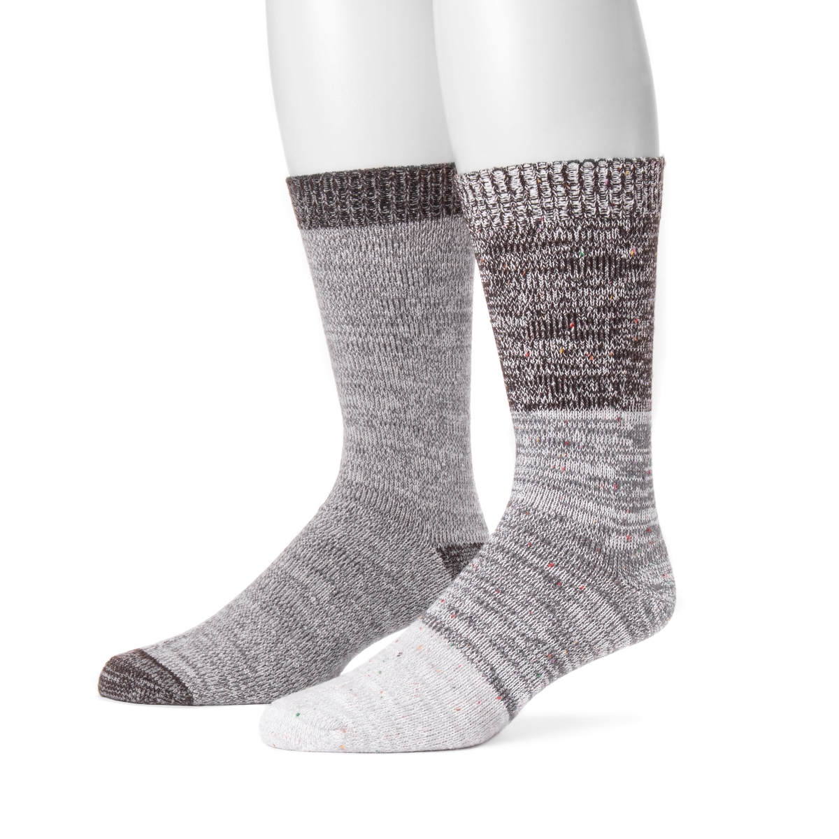 Muk Luks 0023480995-OS Mens 2 Pair Fluffy Yarn Boot Socks, Java & Cinder - One Size