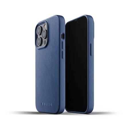 Mujjo Full Leather Case for iPhone 13 Pro | Premium Leather, Naturally Aging | Super Slim, Leather Wrapped, Wireless Charging Compatible (Monaco Blue)