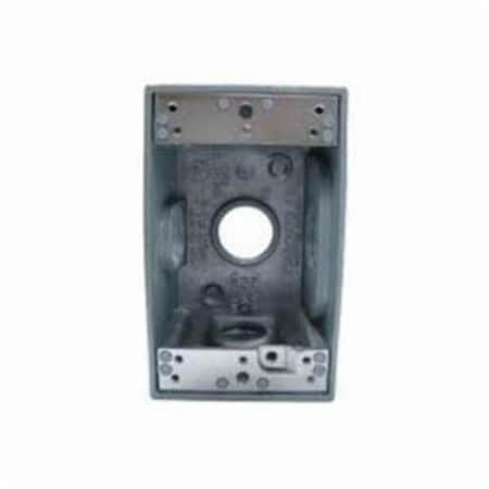HEIGHT 4.5 INCH<br />WIDTH 2.75 INCH<br />DEPTH 2 INCH<br />CAPACITY 18 COPPER INCH<br />1 GANG<br />5 HUB(S)<br />HUB LOCATION (1) BACK, (1) EACH SIDE, (1) EACH END<br />1/2 INCH HUB SIZE<br />SURFACE MOUNTING<br />0. 094 INCH DIE CAST ALUMINUM<br />GRAY