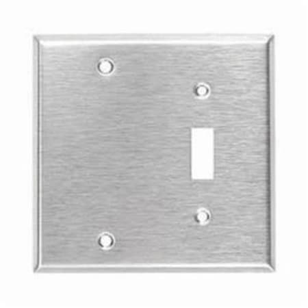 Mulberry 97522 430 Stainless Steel Box Mount Standard Size 2-Gang Combination Wallplate (1) Blank (1) Toggle Switch