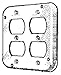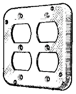 Mulberry Finished cover features steel construction with powder-coated finish. Square cover has two duplex receptacles configuration. It measures 4-11/16 Inch x 4-11/16 Inch x 1/2 Inch. Cover mounts to ears on any box. Cover is UL listed and NEC certified.