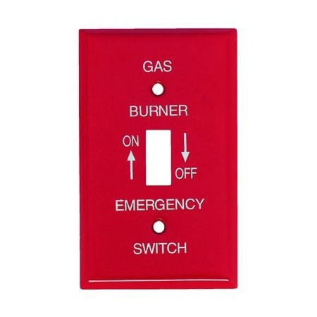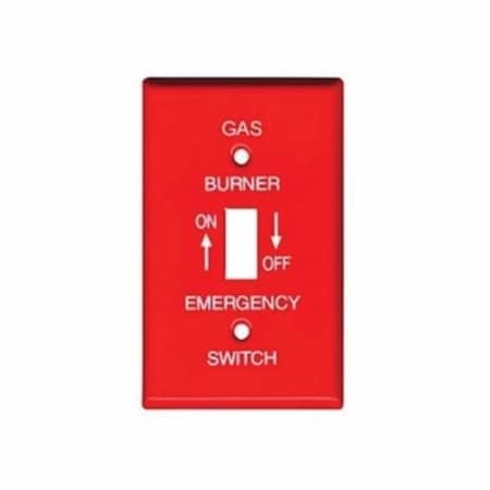 Red, 1 Gang, Single Toggle, Emergency Gas Burner On/Off, Wall Plate, UL Listed, Bulk Cello Wrap.