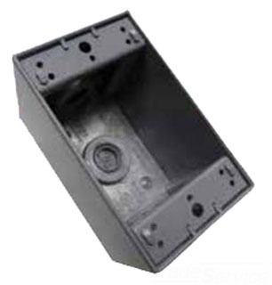 Part Number: 095327305846 <br> Part: Mulberry Metal 30584 Weatherproof Outlet Box, 1-Gang, 2-5/8" Deep, (3) 3/4" Hubs, Aluminum <br> 1-Gang, Weatherproof Box, Die Cast. Depth: 2-5/8". (3) 3/4" Threaded Outlets (1 in each end, 1 in back), Cubic Inches: 24.0". Includes: (2) Closure Plugs & Ground Screw. Color: Gray. <br> Gangs:1 <br> Material:Die Cast <br> Type:Outlet Box <br> Product Depth:2 5/8 in <br> Cubic Inches:24 in <br> Knockouts:3/4 in, 3-KO <br> Also known as: 095327305846, MUL30584, Mulberry Metal, 30584, 1-Gang Boxes - Metallic, Metallic Boxes & Covers, Boxes - Weatherproof, Boxes, Enclosures, deep Bell box <br> Equivalent to: <ul></ul>