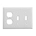 Mulberry Metal 3-Gang Standard size combination wallplate in white color, has stainless steel construction and smooth semi-gloss finish. Rectangular combination wallplate has horizontal orientation and employs two toggle switch as well as one duplex receptacle configuration. Combination wallplate is great for general-purpose applications. Wallplate is UL listed.