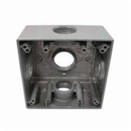 Mulberry Metal 30254 Weatherproof Box, 2-Gang, Depth: 2", (5) 3/4" Hubs, Die Cast