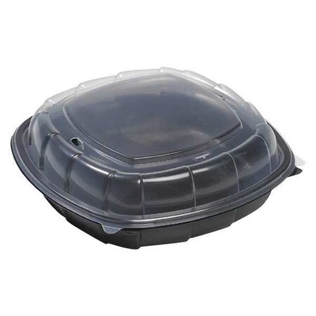 Breakaway Hinged Poly Food Containers, Black/clear, 64.2oz, 10x10x2.5,148/crtn