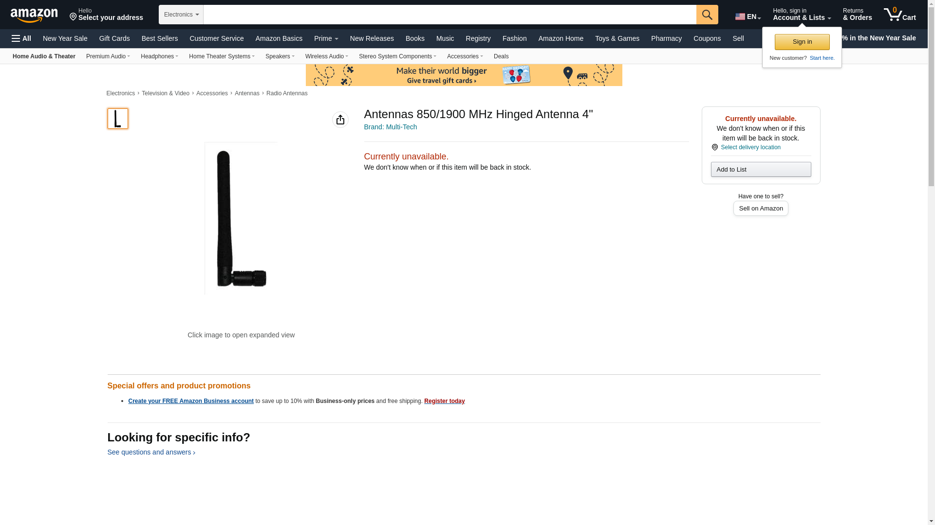 Multi-Tech Systems ANTENNA CDMA/F2 R/A HINGED
