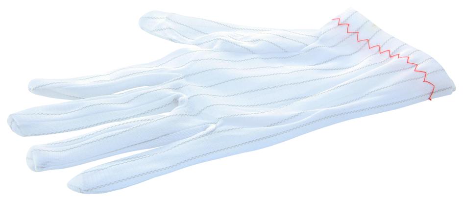 ESD-SAFE GLOVES; Safety Category:CAT1 / EN388; Glove Style:Full; Glove Size:L; Glove Colour:White; Glove Material:Polyester; Product Range:-; Colour:Ivory w/Stripe; Material:Polyester w/Conductive Carbon Line Every 10mm RoHS Compliant: Yes