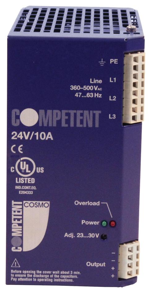 | Feature | <b>Price For:</b> Each<b>Order Unit:</b> Each\xa01 <b>Approvals / Standards:</b>: - <b>Input Voltage AC Max:</b>: 550 <b>Input Voltage AC Min:</b>: 340 <b>Input Voltage VAC:</b>: 340V to 550V <b>No. of Outputs:</b>: 1 <b>Output Current Max:</b>: 10 <b>Output Current Max:</b>: 10A <b>Output Power Max:</b>: 240 <b>Output Voltage Nom.:</b>: 24V <b>Output Voltage Nom.:</b>: 24 <b>Power Supply Output Type:</b>: Fixed <b>SVHC:</b>: To Be Advised |