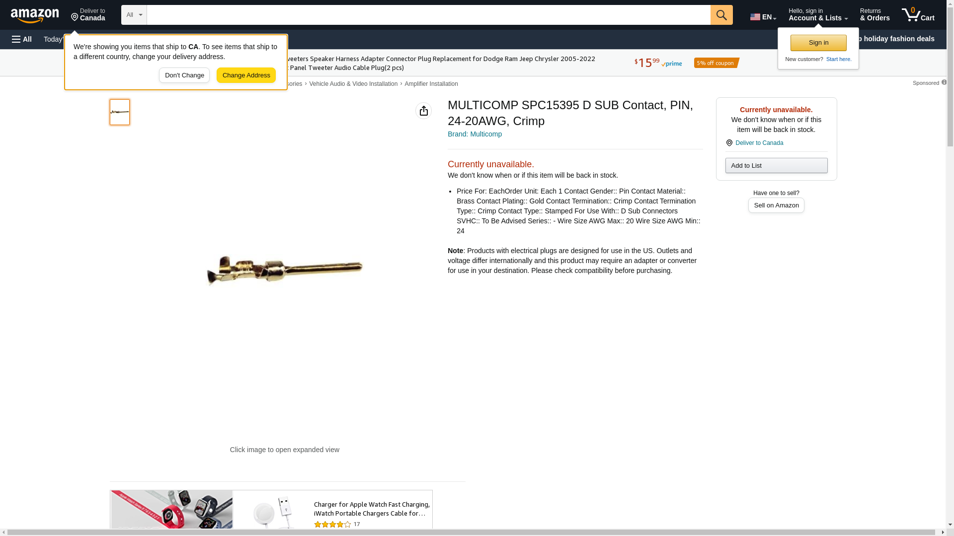 | Feature | MULTICOMP (FORMERLY FROM SPC) SPC15395 D SUB CONTACT, PIN, 24-20AWG, CRIMP |