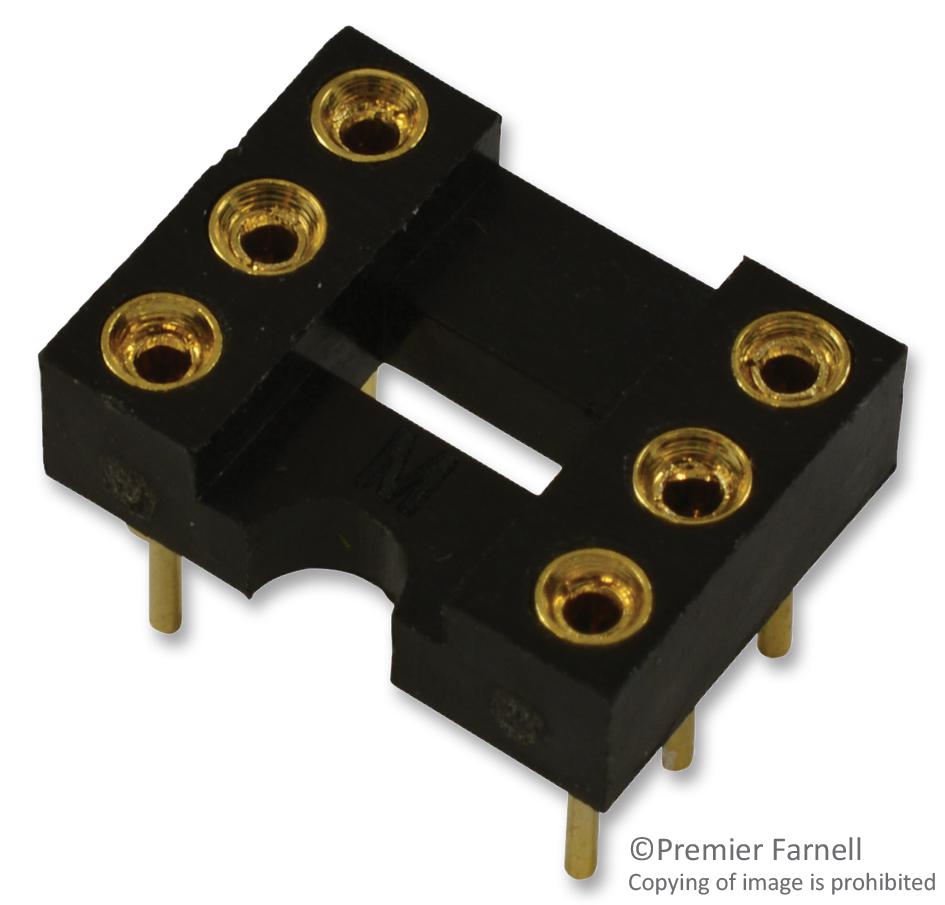 DIP SOCKET, 6 POSITION, THROUGH HOLE; No. of Contacts:6Contacts; Connector Type:DIP Socket; Pitch Spacing:2.54mm; Product Range:MP Series; Row Pitch:7.62mm; Contact Material:Beryllium Copper; Contact Plating:Gold Plated Contacts RoHS Compliant: Yes