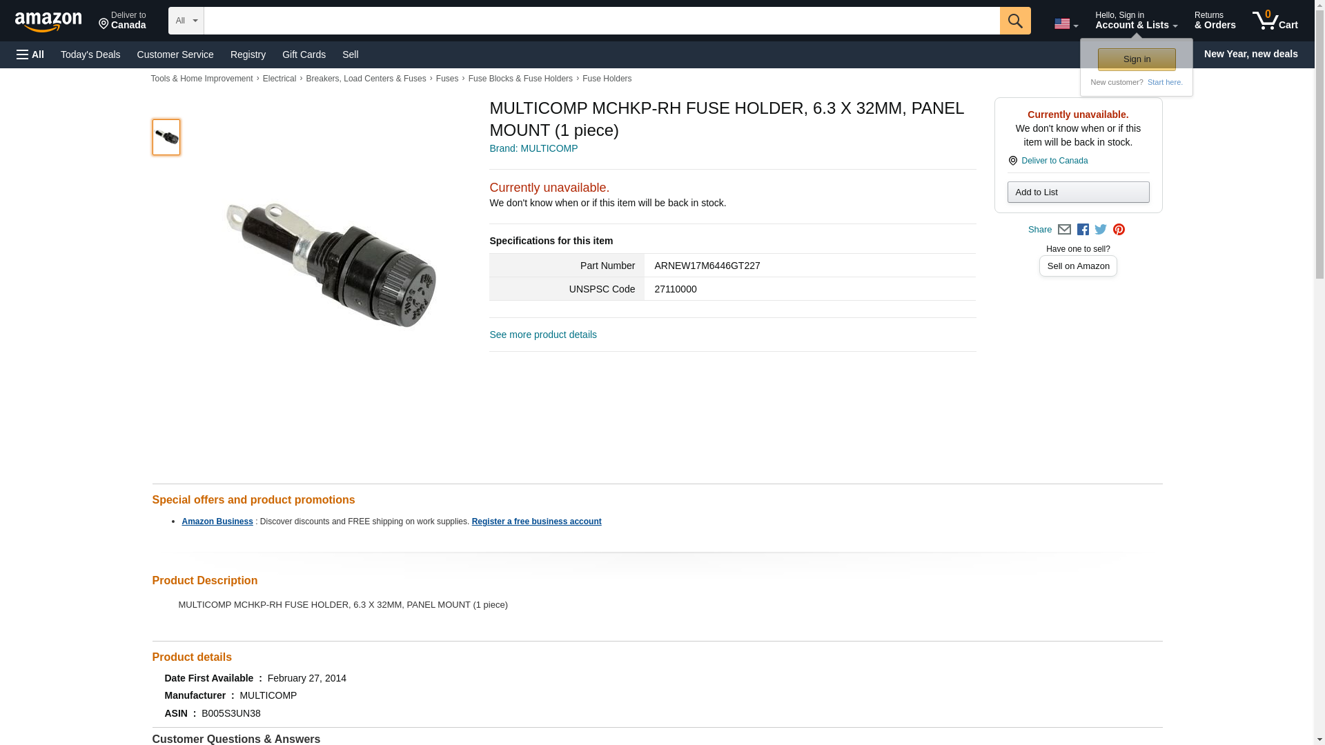 Multicomp Fuse Holder, 6.3 X 32Mm, Panel Mount - MCHKP-RH