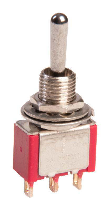 | Feature | <b>Price For:</b> Pack of 50<b>Order Unit:</b> Each\xa01 <b>Actuator Style:</b>: Bat <b>Contact Configuration:</b>: SPDT <b>Contact Current Max:</b>: 5 <b>Contact Voltage AC Nom:</b>: 250 <b>Contact Voltage DC Nom:</b>: 28 <b>Product Range:</b>: - <b>SVHC:</b>: To Be Advised <b>Switch Mounting:</b>: Panel <b>Switch Operation:</b>: On-Off-On <b>Switch Terminals:</b>: Solder |