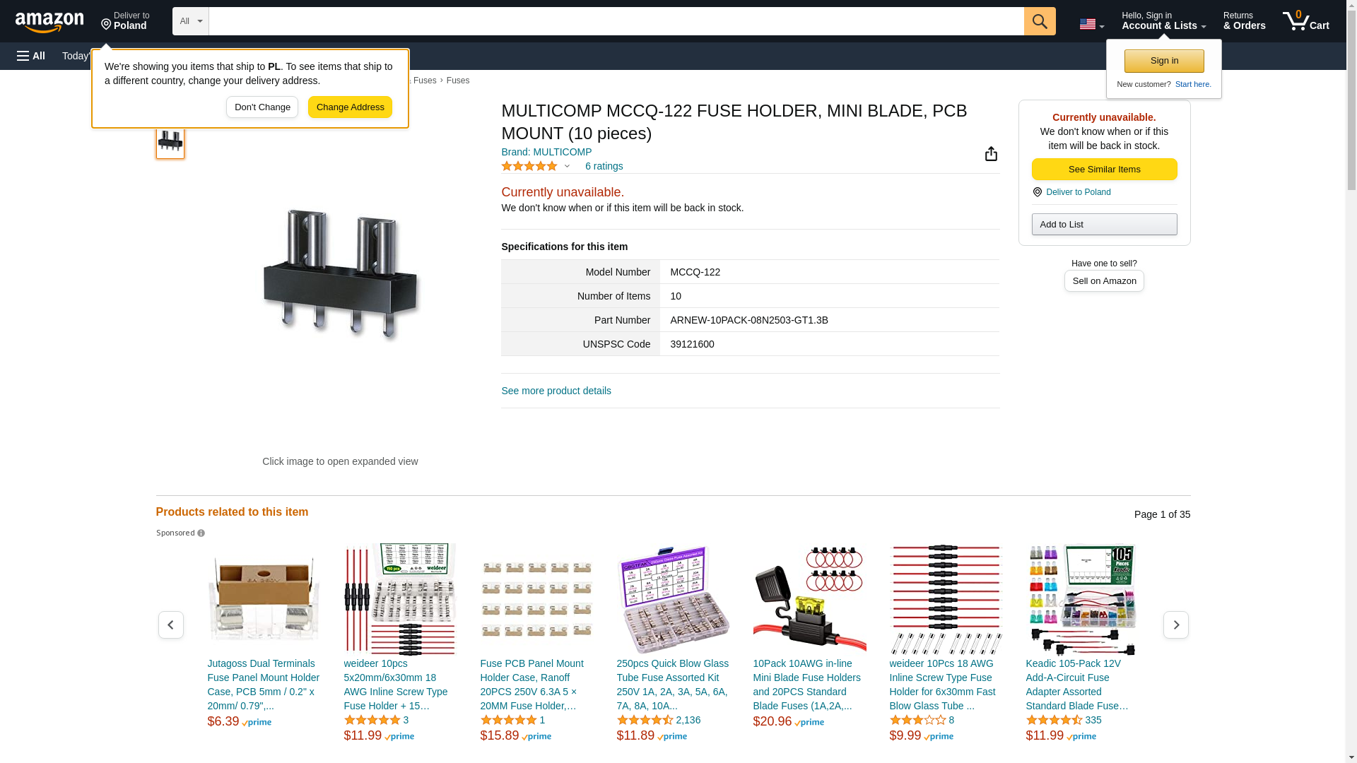 MULTICOMP MCCQ-122 FUSE HOLDER, MINI BLADE, PCB MOUNT (50 pieces)