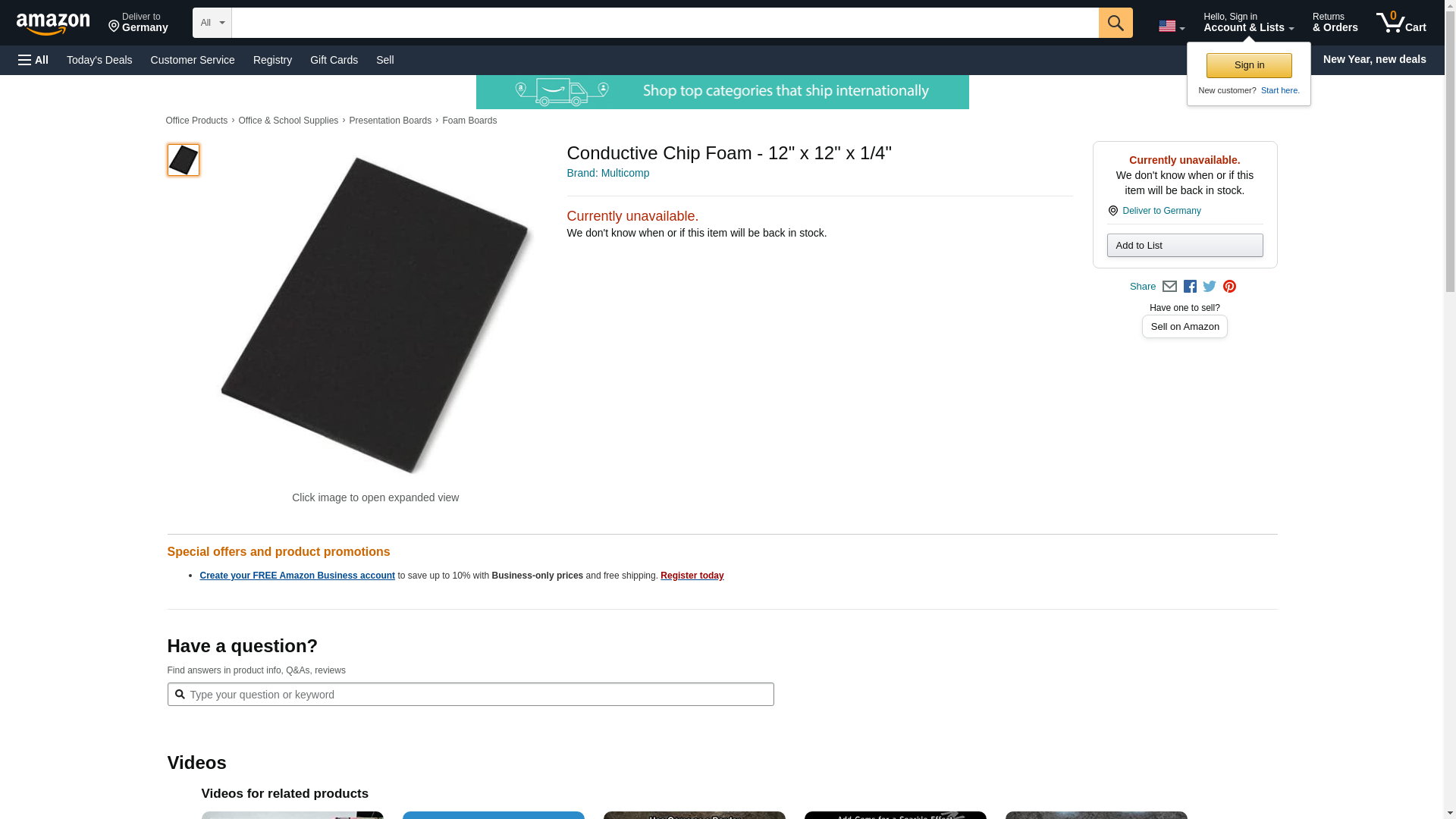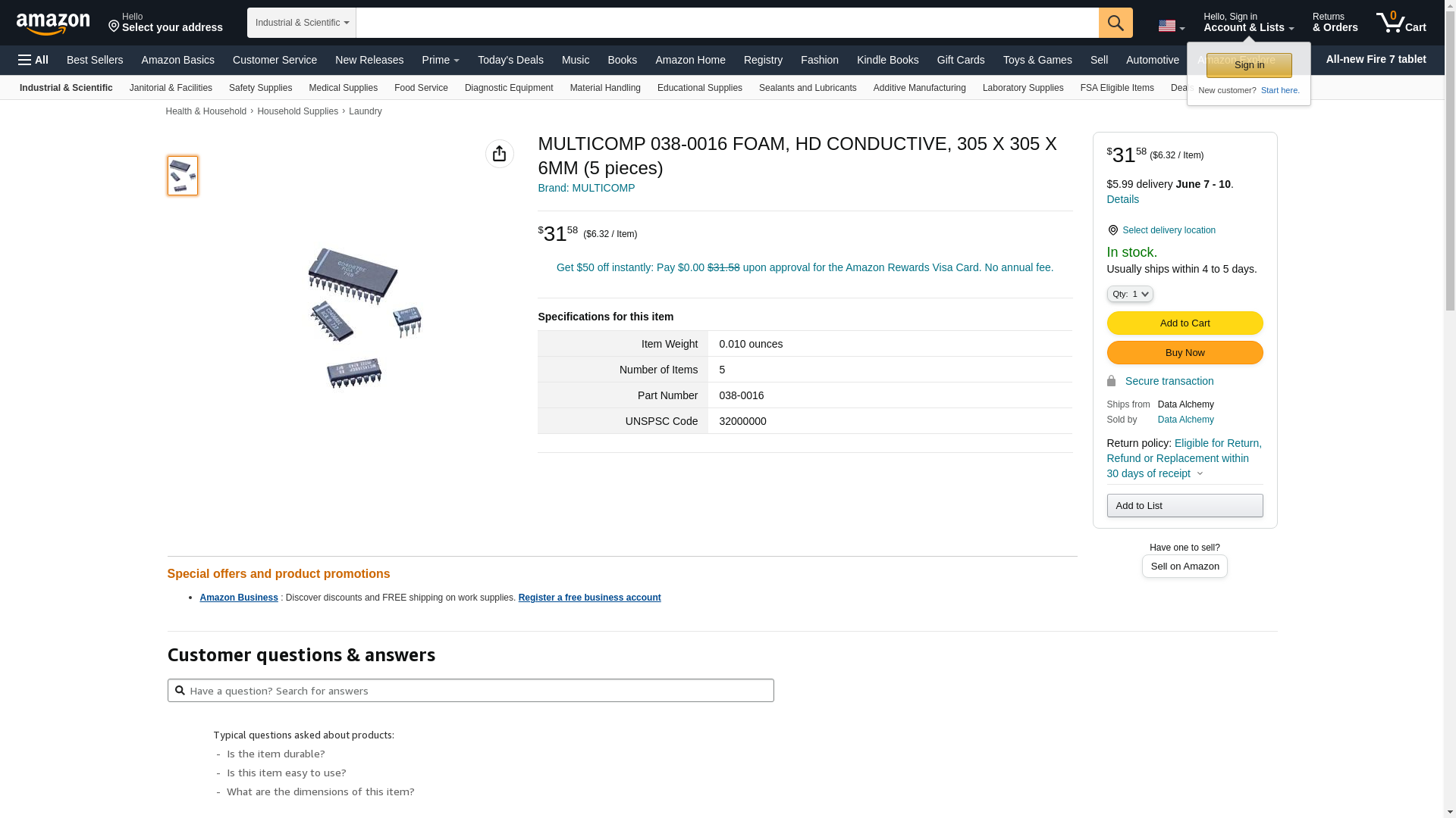 MULTICOMP 038-0016 FOAM, HD CONDUCTIVE, 305 X 305 X 6MM (5 pieces)