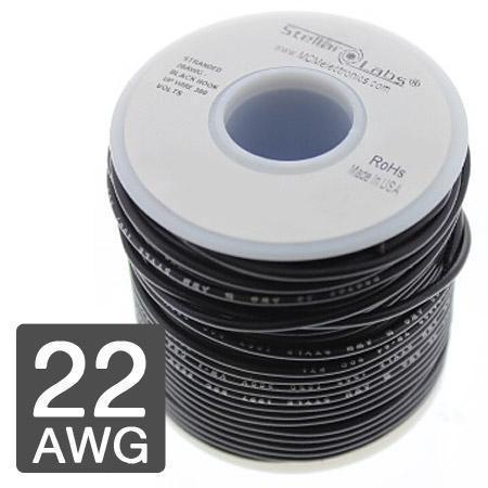 Jacket Material:PVC; Jacket Color:Black; Wire Gauge:22AWG; Conductor Area CSA:0.33mm²; Reel Length (Imperial):25ft; Reel Length (Metric):7.6m; No. of Max Strands x Strand Size:-; Voltage Rating:300V; Conductor Material:Tinned Copper RoHS Compliant: Yes