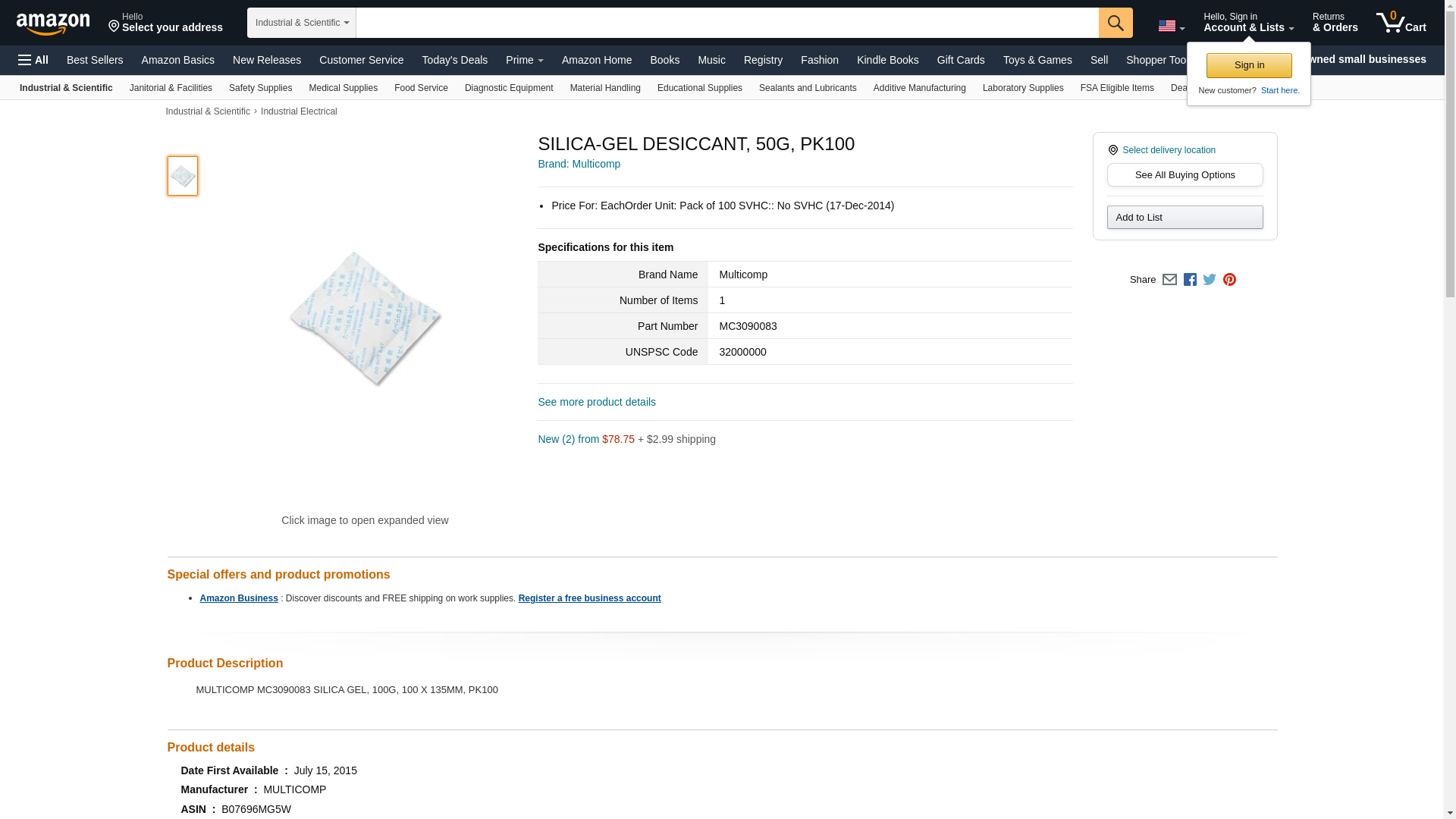 Multicomp Silica-Gel Desiccant, 50G, Pk100 - MC3090083