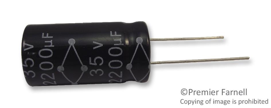 ALUMINUM ELECTROLYTIC CAPACITOR 2200UF, 35V, 20%, RADIAL; Capacitance:2200µF; Voltage Rating:35V; Product Range:MCGPR Series; Capacitance Tolerance:± 20%; Capacitor Terminals:Radial Leaded; Lifetime @ Temperature:2000 hours @ 85°C RoHS Compliant: Yes