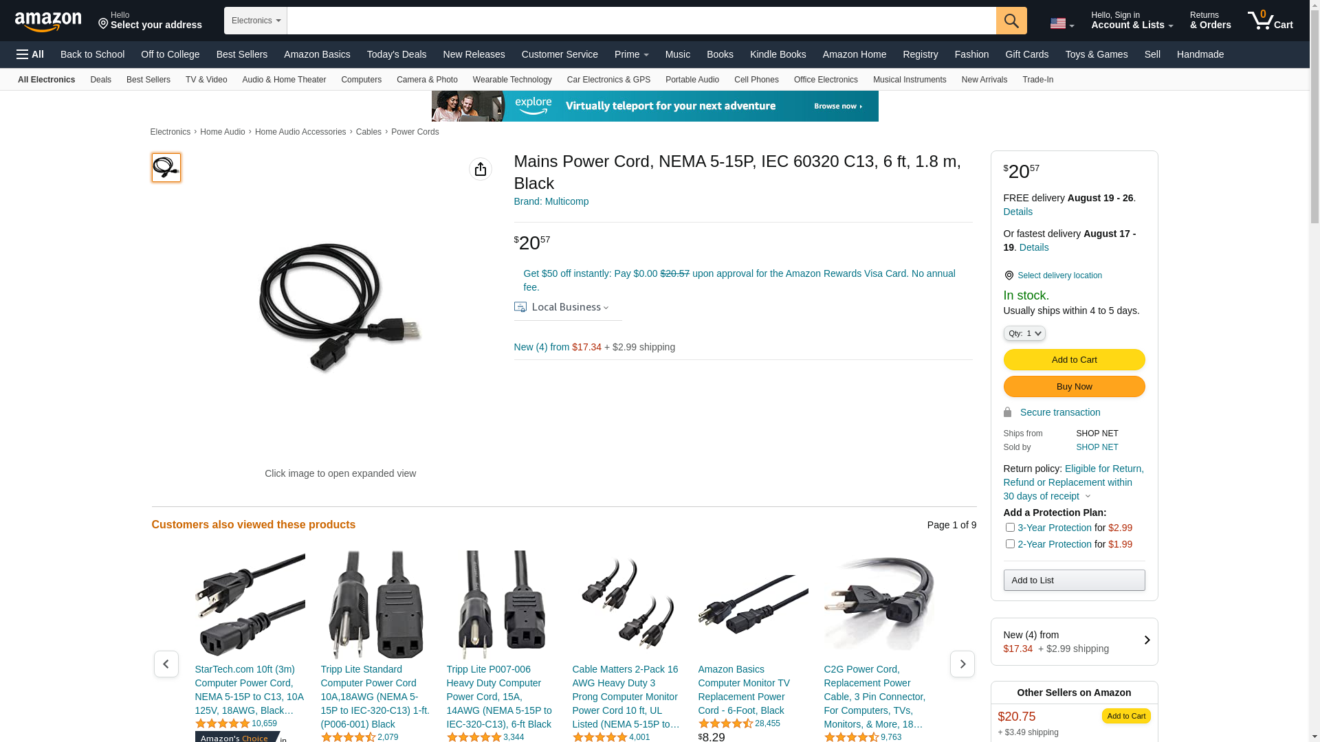 - <b>Price For:</b> Each<b>Order Unit:</b> Each 1 <b>Cable Length - Imperial:</b>: 6 <b>Cable Length - Metric:</b>: 1.8 <b>Connector Type A:</b>: NEMA 5-15P <b>Connector Type B:</b>: IEC 320 C13 <b>Current Rating:</b>: 10 <b>Jacket Color:</b>: Black <b>SVHC:</b>: To Be Advised <b>Voltage Rating:</b>: 125