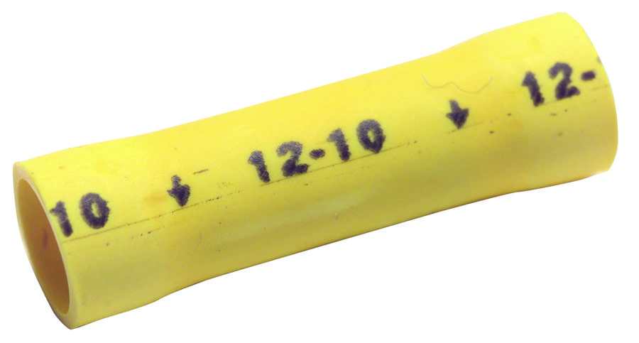 - <b>Price For:</b> Pack of 1<b>Order Unit:</b> Each 1 <b>Connector Type:</b>: Butt Splice <b>Contact Material:</b>: Copper <b>Contact Plating:</b>: Tin <b>Insulator Color:</b>: Yellow <b>Insulator Material:</b>: PVC (Polyvinylchloride) <b>Product Range:</b>: CCS-TV Series <b>SVHC:</b>: To Be Advised <b>Series:</b>: - <b>Stud/Tab Size:</b>: - <b>Termination Method:</b>: Crimp <b>Wire Size AWG Max:</b>: 10 <b>Wire Size AWG Min:</b>: 12