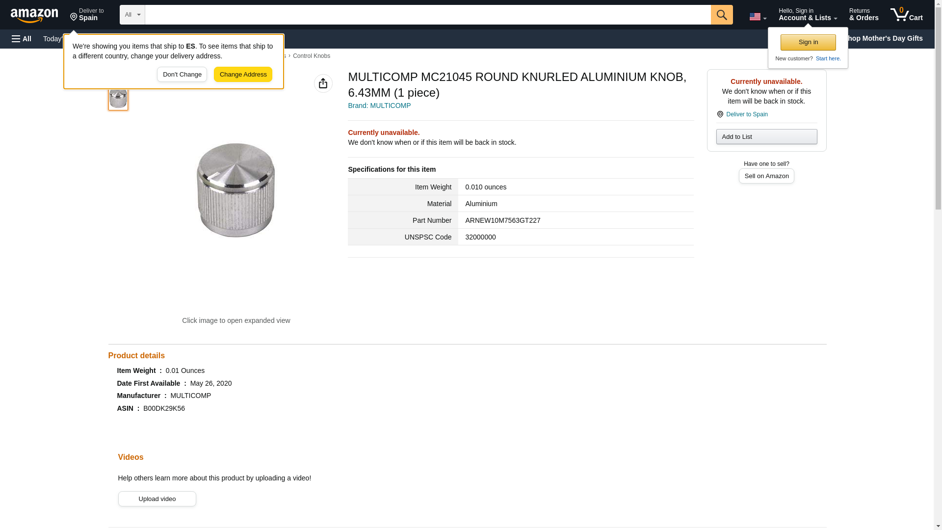 MULTICOMP MC21045 ROUND KNURLED ALUMINIUM KNOB, 6.43MM (500 pieces)