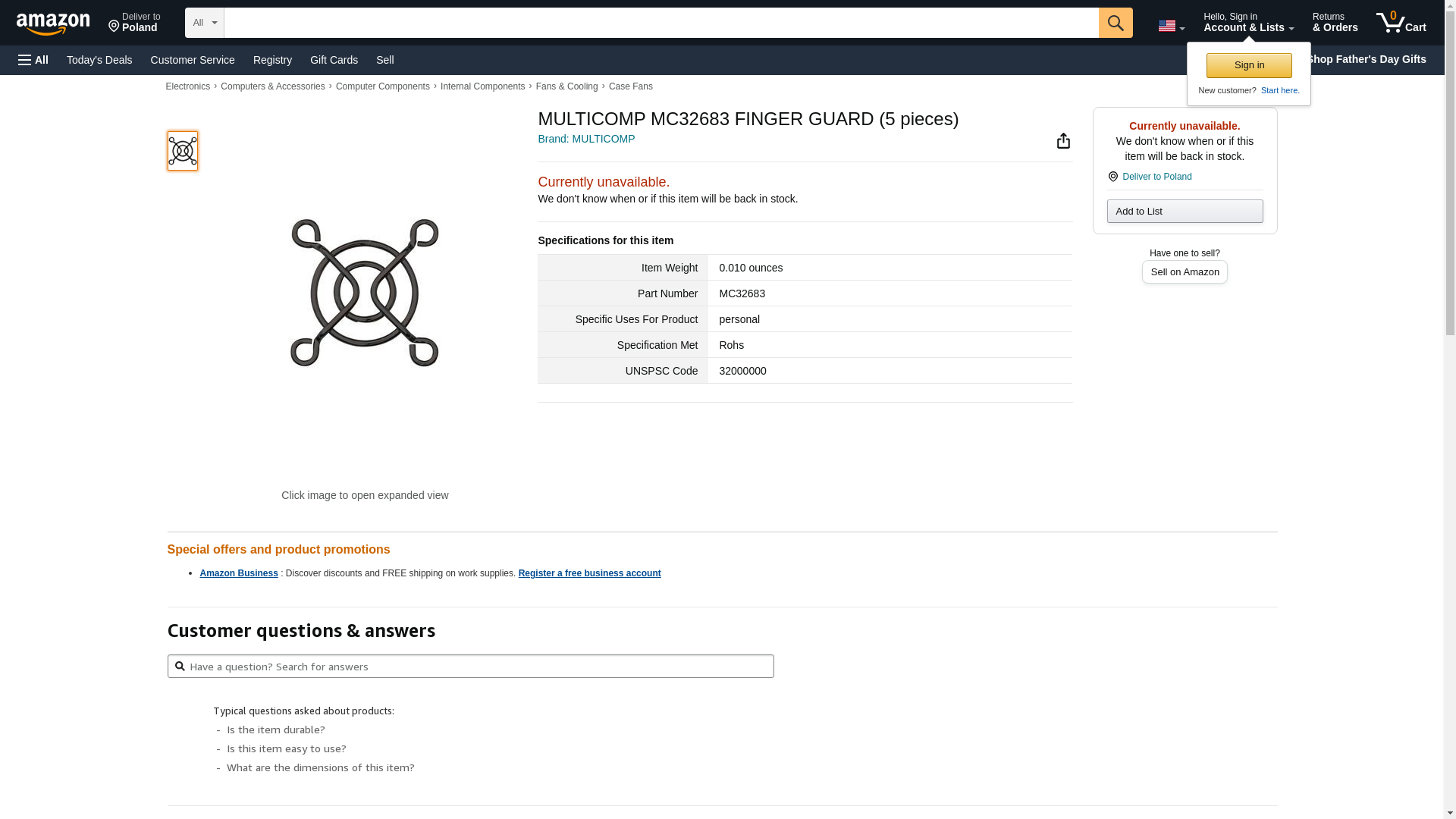 | Feature | MULTICOMP MC32683 FINGER GUARD |