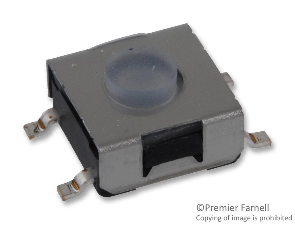 - <b>Price For:</b> 1 Cut tape <b> Contact Configuration:</b> SPST-NO <b> Operating Force:</b> 360gf <b> Contact Voltage DC Nom:</b> 12V <b> Contact Current Max:</b> 50mA <b> Actuation Type:</b> Top <b> Actuator / Cap Color:</b> Clear <b> Actuator Style:</b> Button <b> Circuitry:</b> SPST-NO <b>RoHS Compliant:</b> Yes