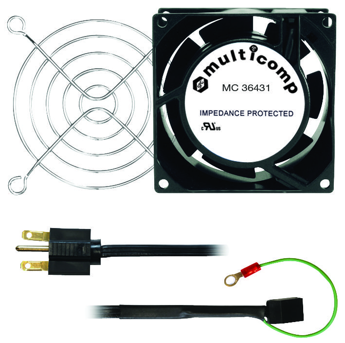 | Feature | <b>Price For:</b> Each<b>Order Unit:</b> Each\xa01 <b>Flow Rate - Imperial:</b>: - <b>Flow Rate - Metric:</b>: - <b>Kit Contents:</b>: 80mm AC Fan, Wire-Form Finger Guard, 72" Power Cord <b>RoHS Compliant:</b>: Yes <b>SVHC:</b>: To Be Advised |