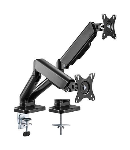 Black Dual Gas Spring Monitor Arm with clamp for 17” to 32” Screen Size