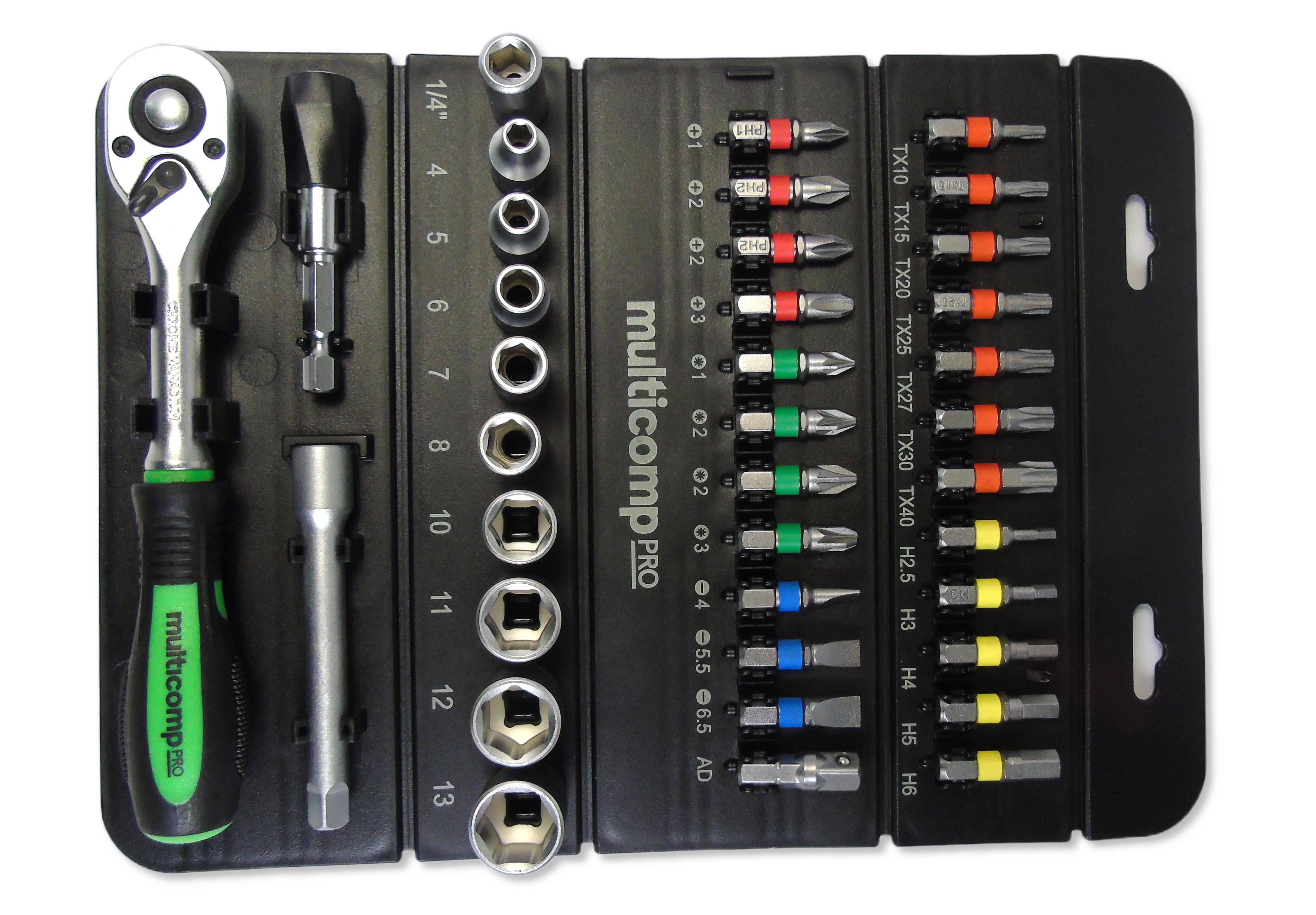 multicomp PRO Socket Bit Set, 1/4" Drive, 37 Pieces