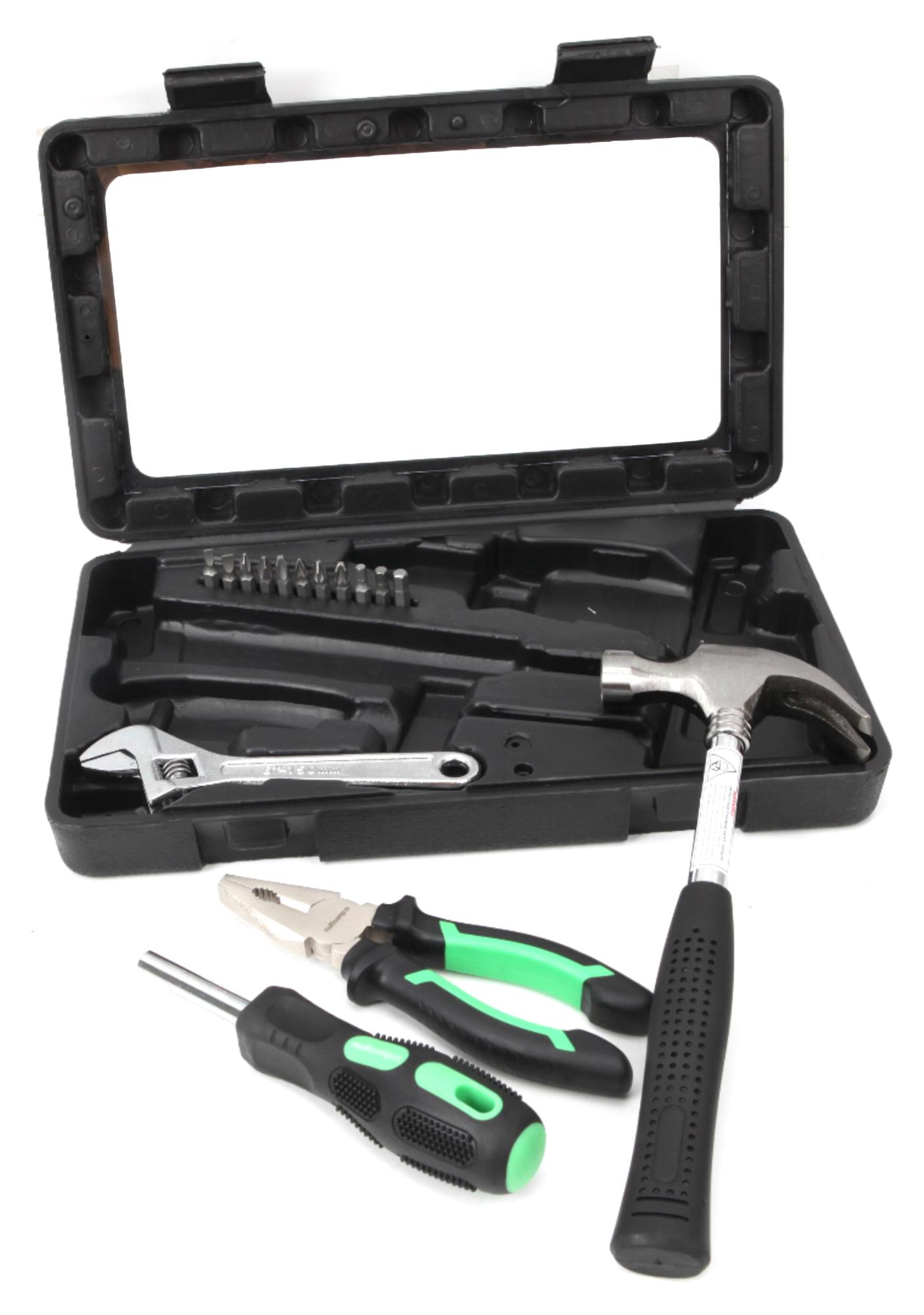 The toolset is equipped with a variety of commonly used tools that can be utilized in various scenes. The tools are conveniently organized in a blow mold case, making storage and transportation hassle-free.