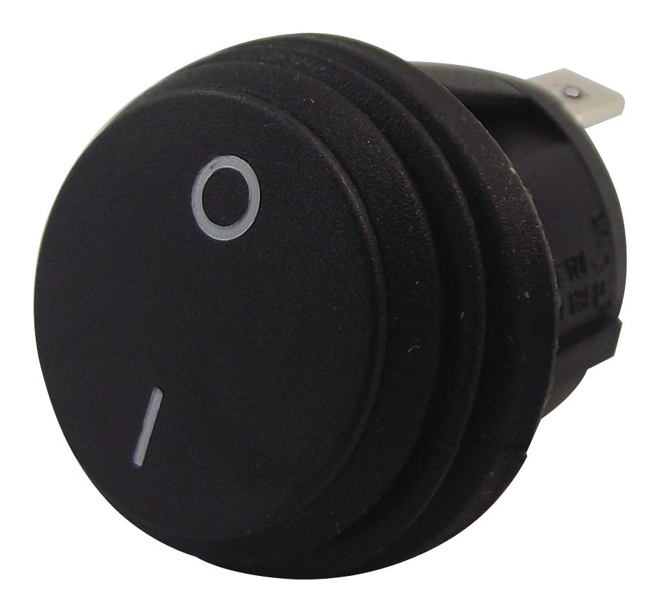 MULTICOMP R13-112A8-02-BB-2A Rocker Switch, Round, Non Illuminated, SPST, On-Off, Black, Panel, 20 A