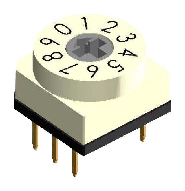 ROTARY SWITCH, 10 POS, 24VDC, THD; Product Range:RBH Series; Switch Mounting:Through Hole; No. of Switch Positions:10 Position; Switching Voltage:24VDC; Output Code:BCD; Switching Current:150mA; Switch Construction:Sealed RoHS Compliant: Yes