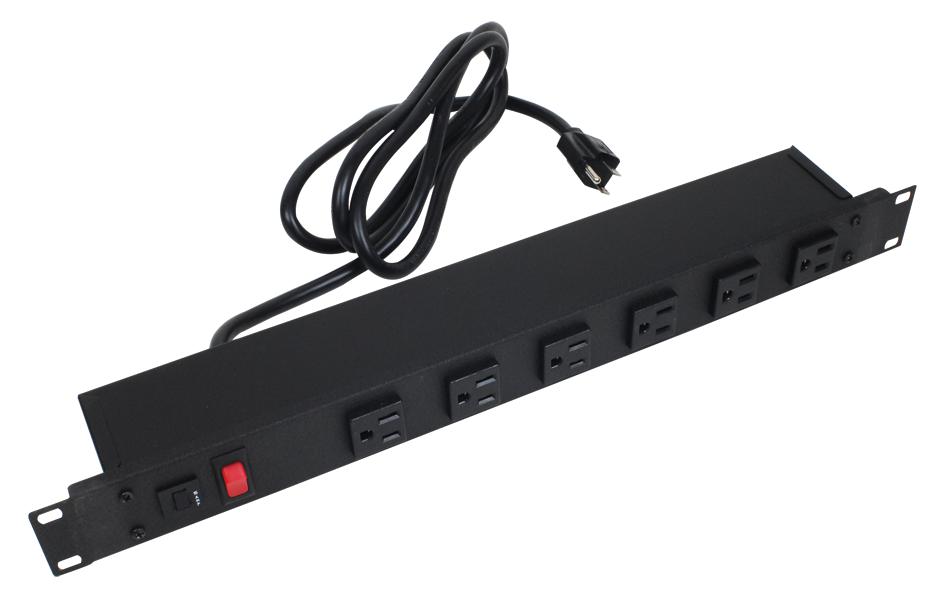 Industrial Rack Mount Strip 6 Front Outlets 6ft Cord