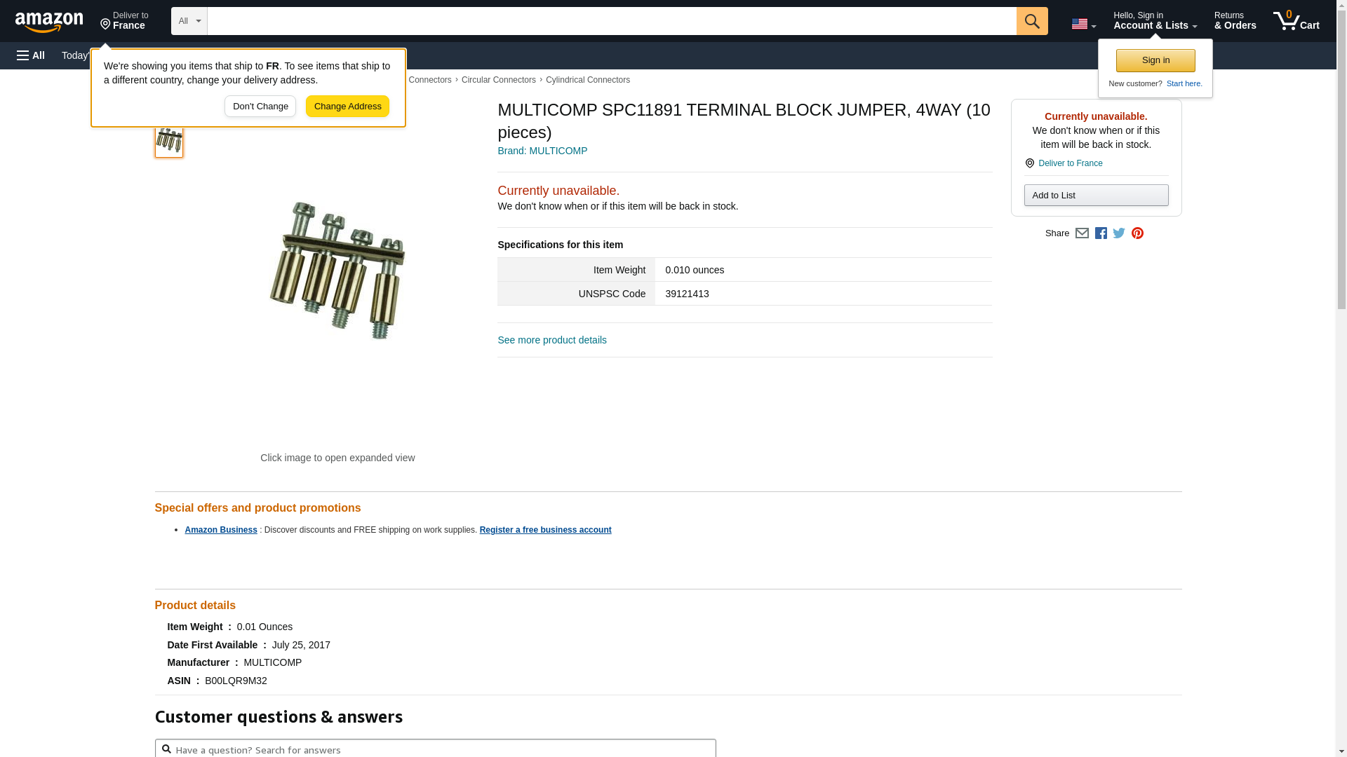 MULTICOMP (FORMERLY FROM SPC) SPC11891 TERMINAL BLOCK JUMPER, 4WAY