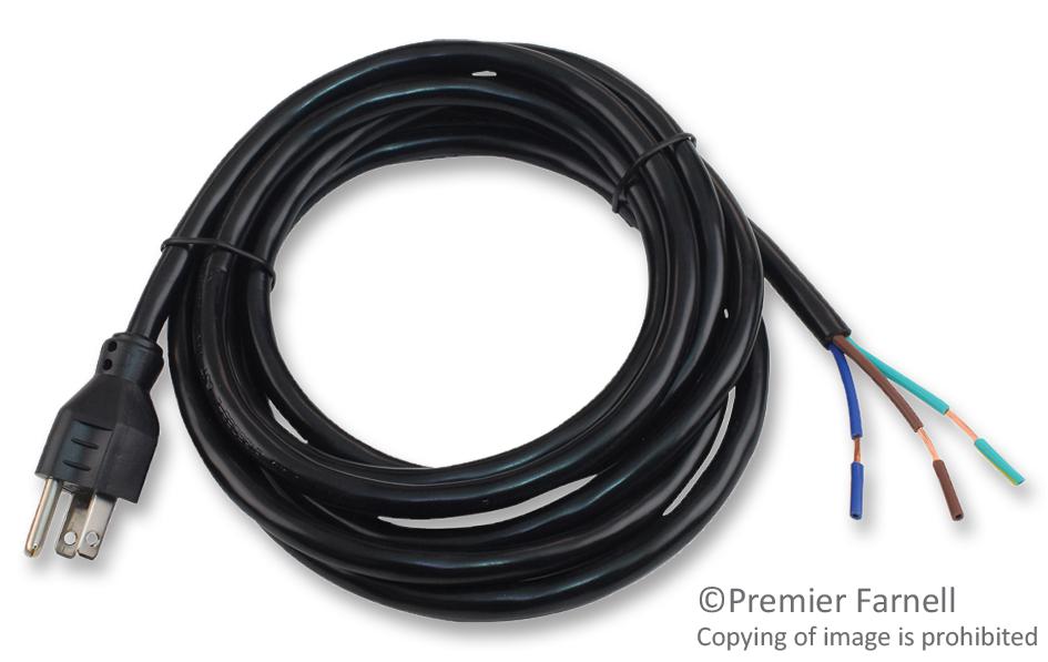 - <b>Price For:</b> Each<b>Order Unit:</b> Each 1 <b>Cable Length - Imperial:</b>: 10 <b>Cable Length - Metric:</b>: 3 <b>Connector Type A:</b>: NEMA 5-15P <b>Connector Type B:</b>: Free / Stripped End <b>Current Rating:</b>: 15 <b>Jacket Color:</b>: Black <b>SVHC:</b>: To Be Advised <b>Voltage Rating:</b>: 125