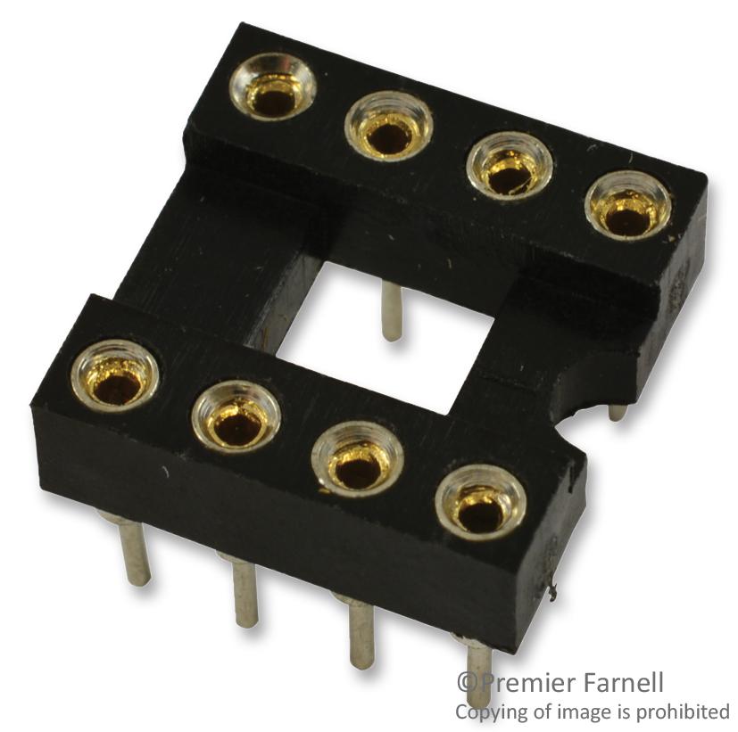 - <b>Price For:</b> Pack of 1<b>Order Unit:</b> Each 1 <b>Connector Type:</b>: DIP Socket <b>Contact Material:</b>: Beryllium Copper <b>Contact Plating:</b>: Gold <b>Contact Termination:</b>: Through Hole Vertical <b>No. of Contacts:</b>: 8 <b>Pitch Spacing:</b>: 2.54 <b>Product Range:</b>: MP Series <b>Row Pitch:</b>: 7.62 <b>SVHC:</b>: To Be Advised