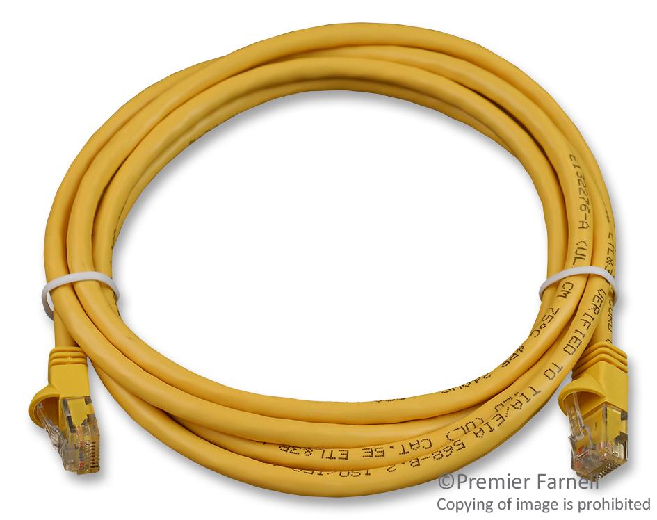 CATEGORY 5E CABLE ASSEMBLY; LAN Category:Cat5e; Connector Type A:RJ45 Plug; Connector Type B:Snagless RJ45 Plug; Cable Length - Imperial:7ft; Cable Length - Metric:2.1m; Jacket Color:Yellow; Product Range:-; Cable Length:7ft RoHS Compliant: Yes