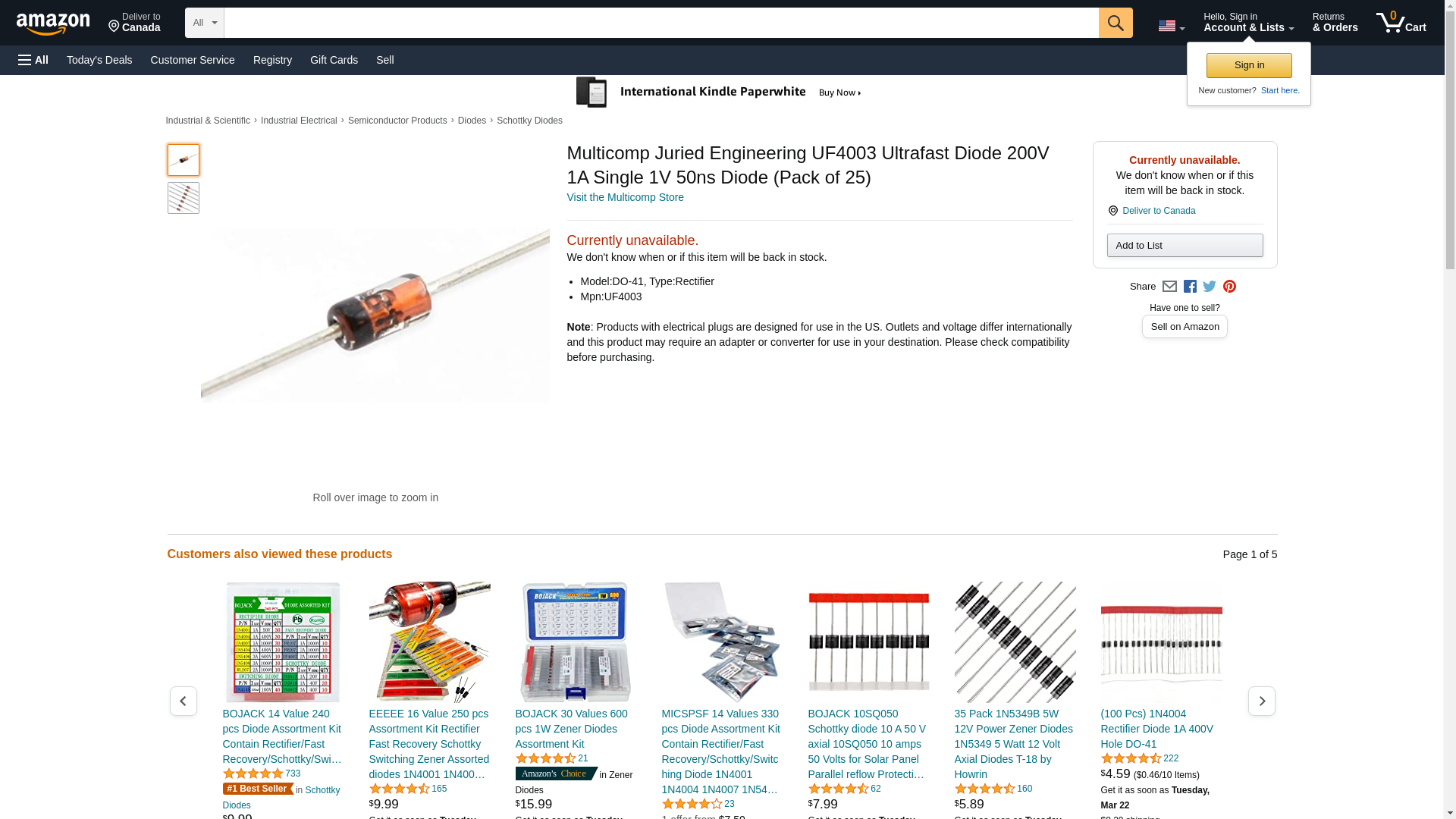 Multicomp UF4003 4003 Fast/Ultrafast Diode, 200V, 1 A (Pack of 20)