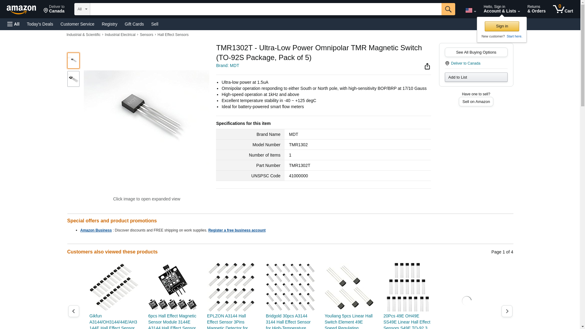 TMR1302T - Ultra-low Power Omnipolar TMR Magnetic Switch (TO-92S package, pack of 5)