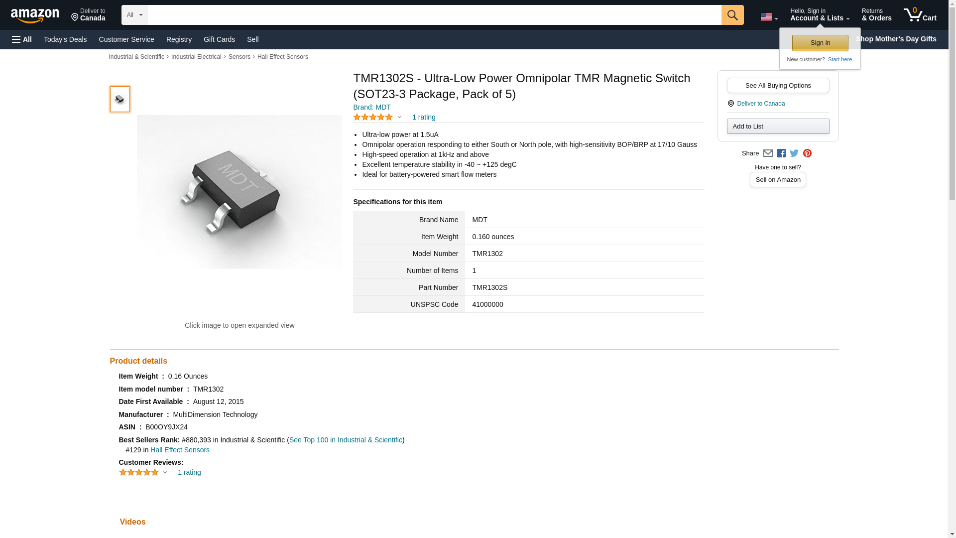 TMR1302S - Ultra-low Power Omnipolar TMR Magnetic Switch (SOT23-3 package, pack of 5)