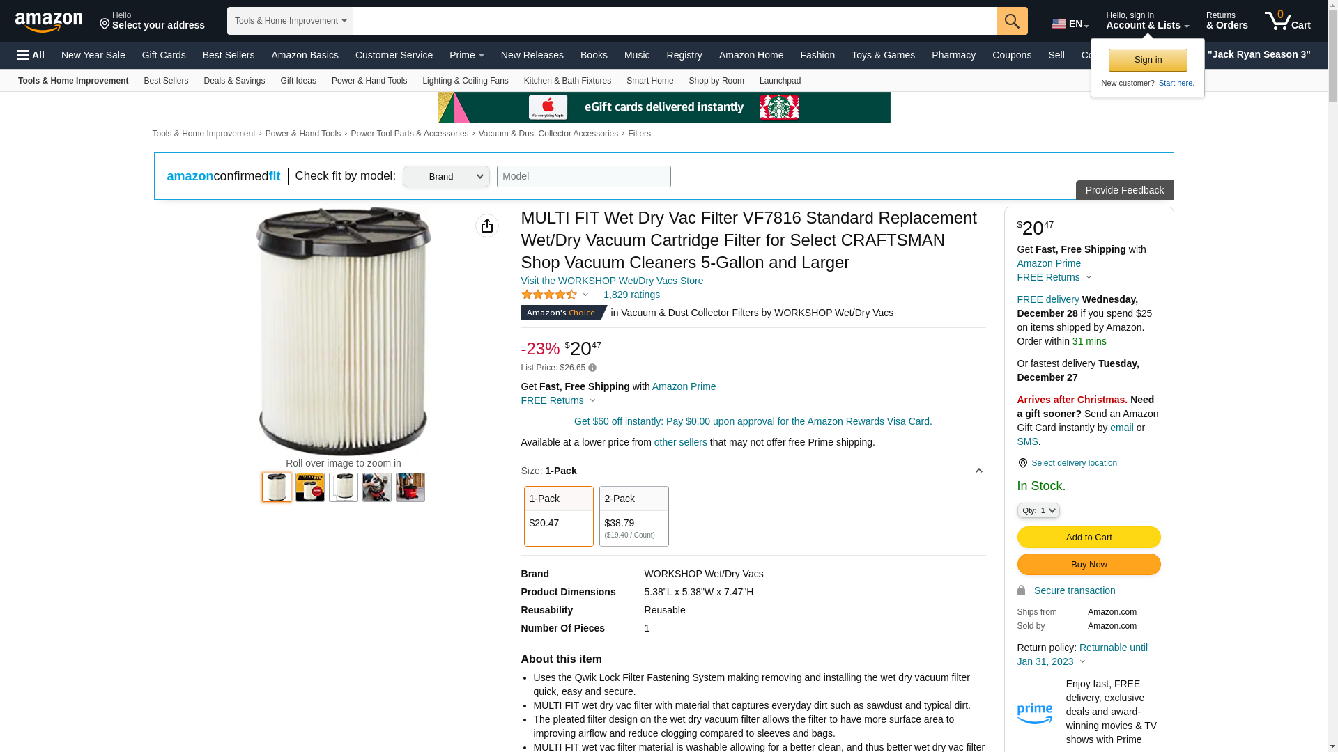 The Multi-Fit Craftsman 1-layer replacement wet dry vac filter is great for everyday dirt such as sawdust or typical debris found in a basement, garage or vehicle. Simply snaps on or off the vacuum for easy cleaning.