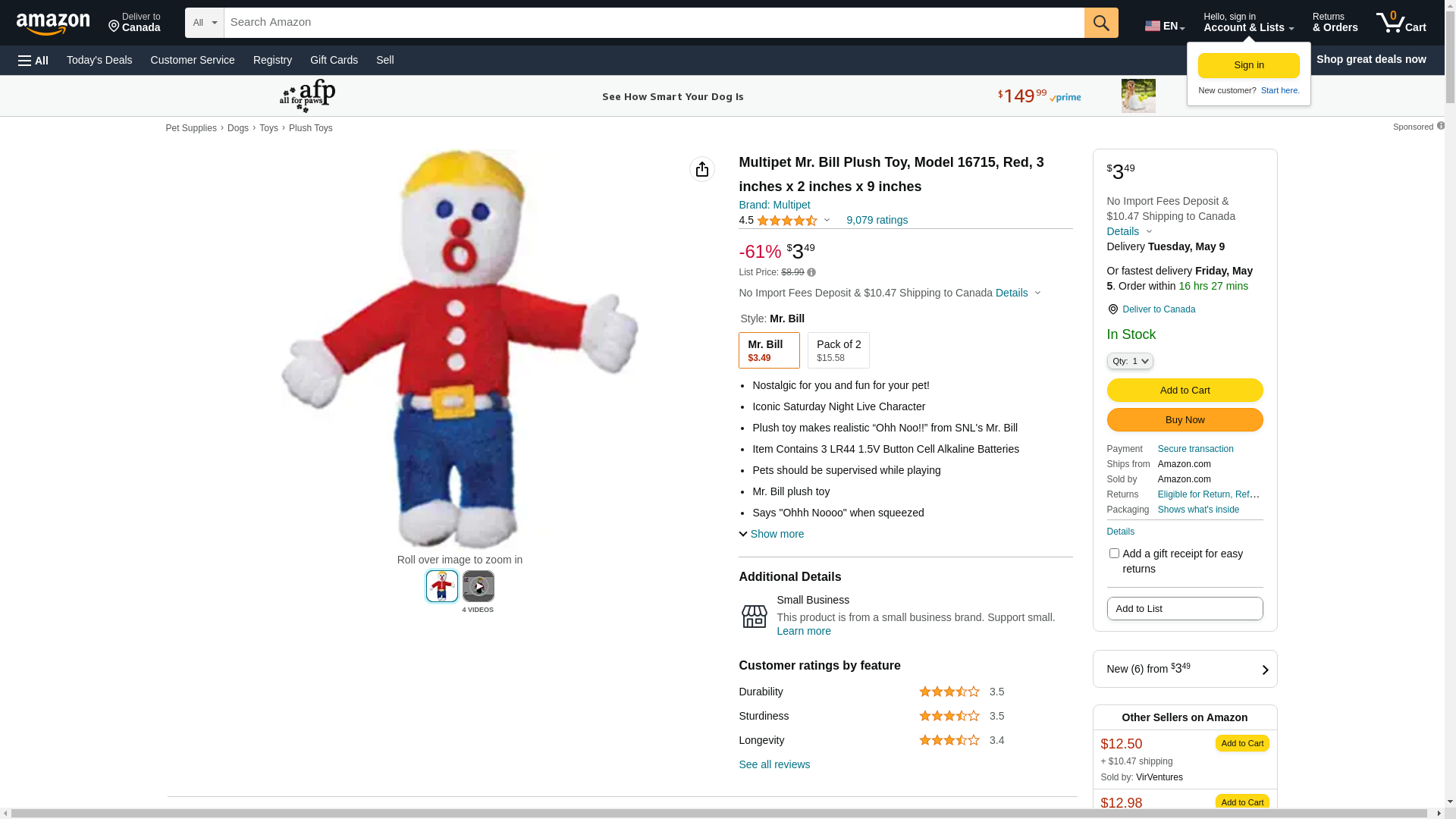 Multipet International 16715 Mr Bill Plush Talking Dog Toy