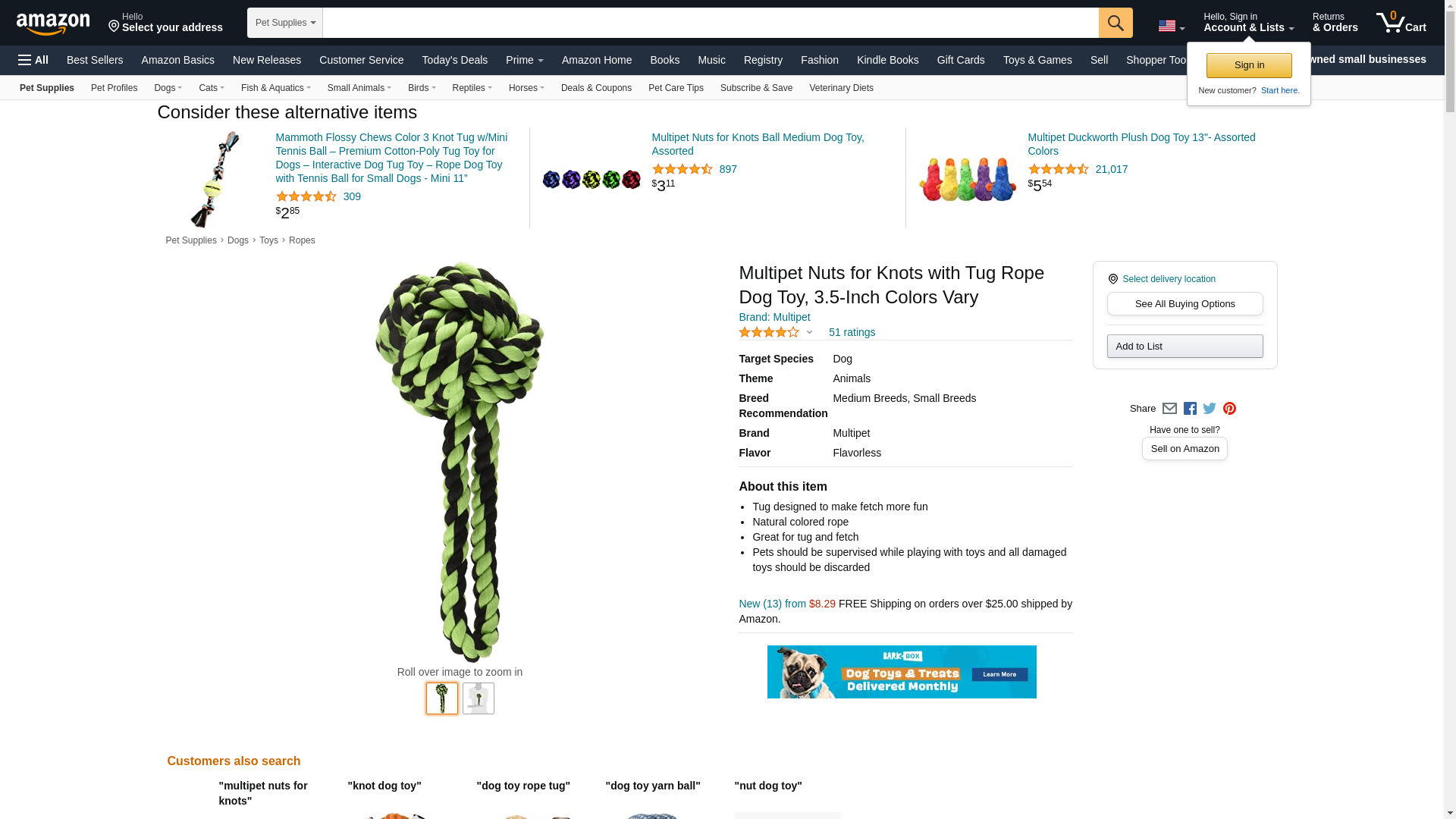 Multipet Nuts for Knots with Tug Rope Dog Toy, 3.5-Inch Colors Vary