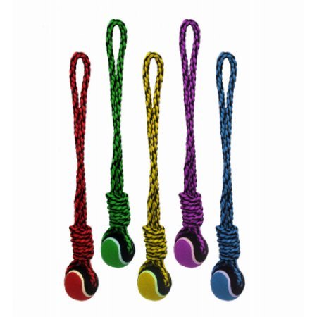 If you have an active chewer on your hands, the Nuts for Knots Rope Tug toy with a Tennis ball is for you! This interactive dog toy is tough and durable, making it great for playtime with your pup.; ; Brand Name: Multipet Sub Brand: Nuts For Knots Color: Assorted Material: Cotton Design: Rope Tug with Tennis Ball Product Type: Dog Toy Length: 20 in.