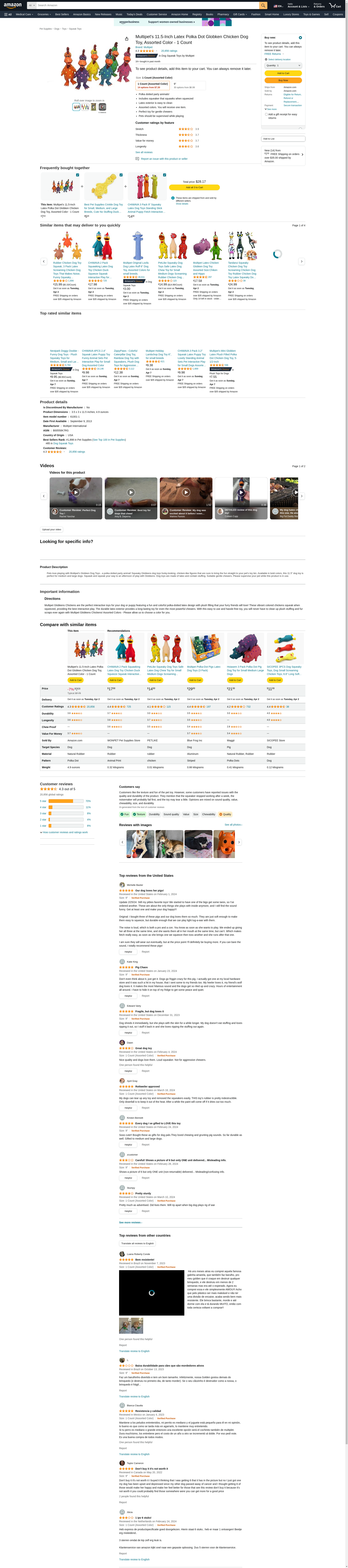 Multipet International 61001 Large Globken Chicken Assorted Colors